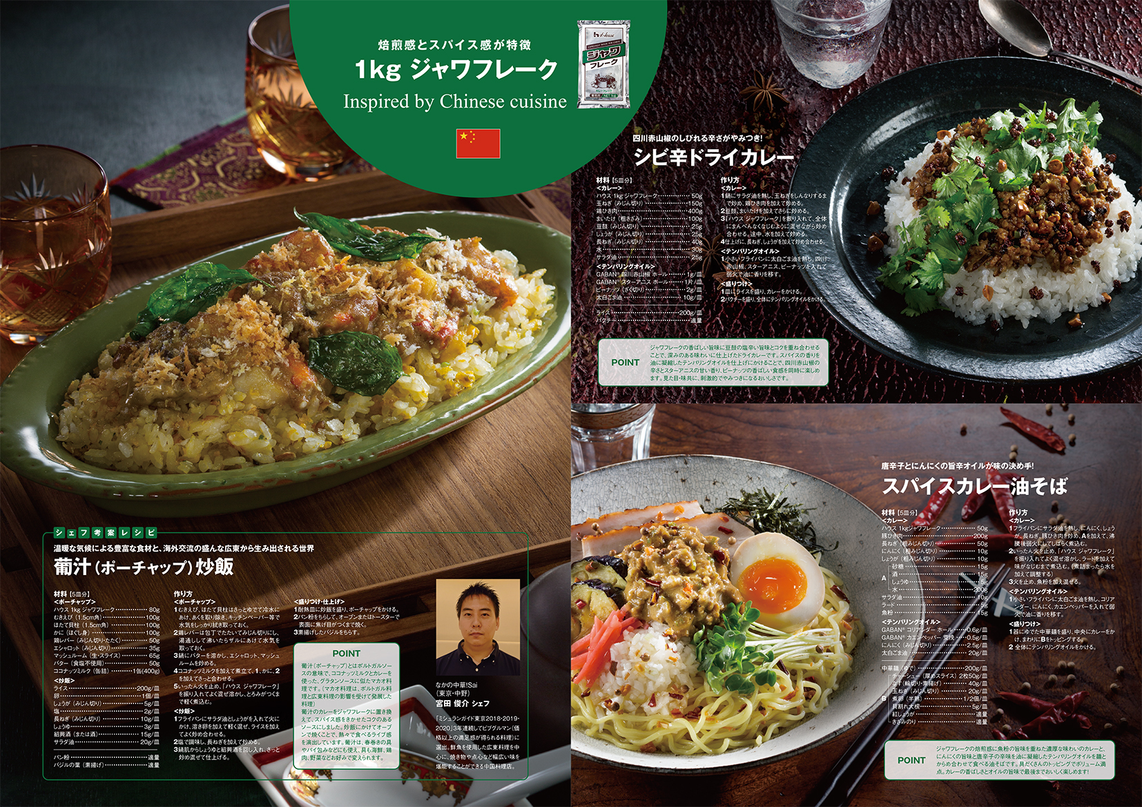 中華料理・トルコ料理・フランス料理をヒントに開発されたメニューを、専門のフードスタイリストとカメラマンが撮影。シズル感あふれる料理写真で、業務用カレーの新たな可能性を引き出しました。