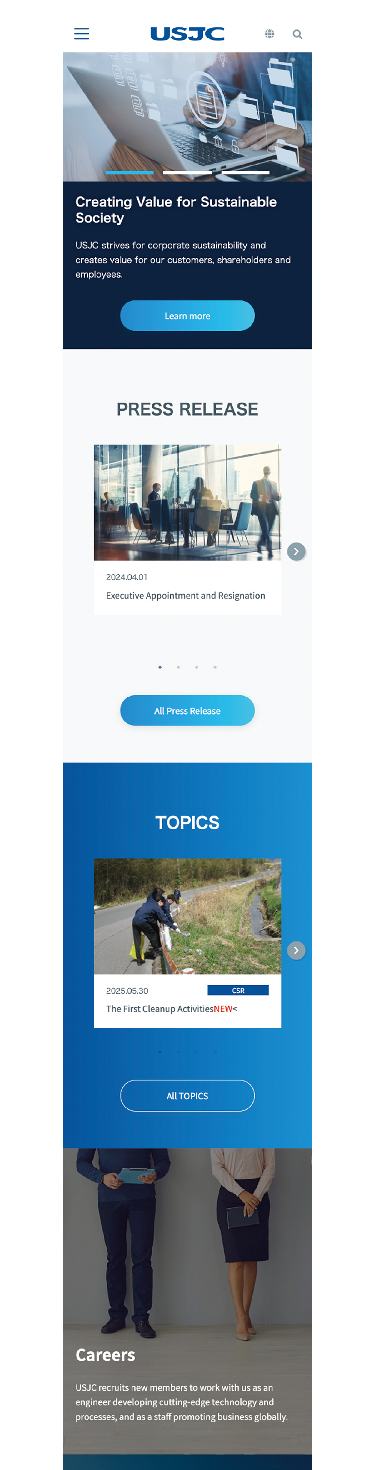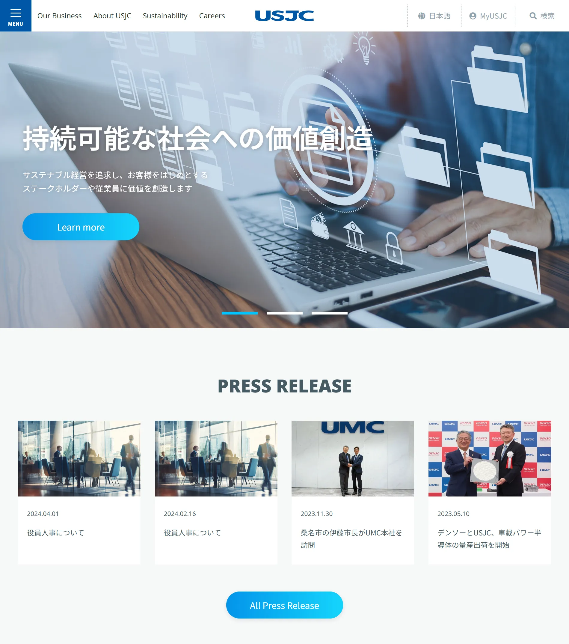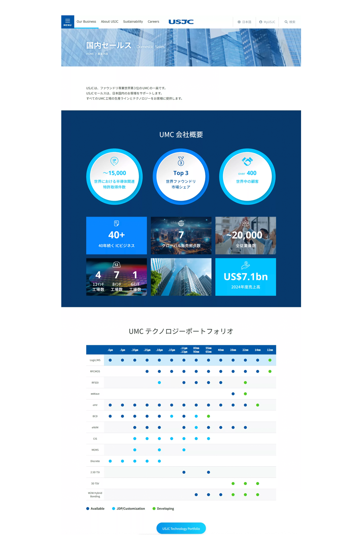 ユナイテッド・セミコンダクター・ジャパン株式会社様のコーポレートサイトリニューアルを担当しました。PC・スマートフォン対応のレスポンシブデザインと CMS 構築により、自社での情報更新が可能な体制を整備。グローバル企業としての信頼性と先進性を効果的に伝えられる企業サイトを制作しました。